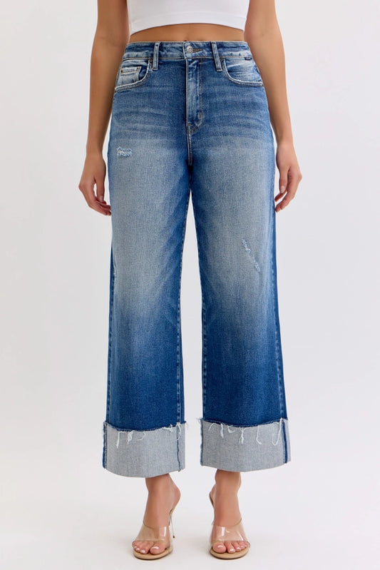 Mid Waisted Barrel Leg with Cuff (Lt. Wash)