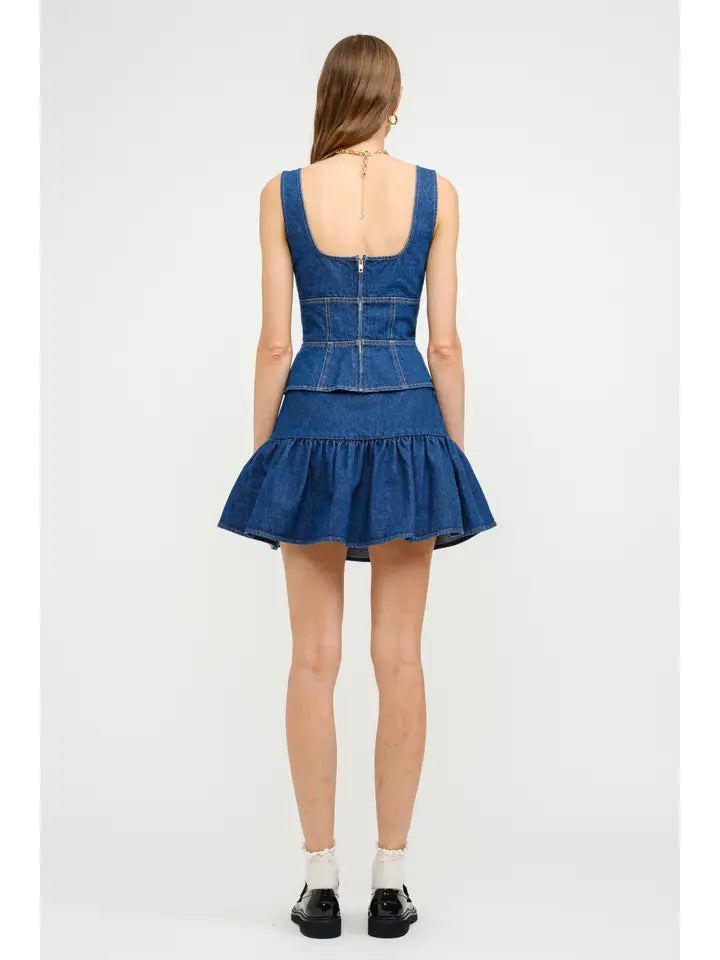 Bring a flirty twist to your wardrobe with the Adira Medium Wash Top. This lace-up denim corset features adjustable ties for a perfect fit and a slight peplum shape that adds a playful flair to your silhouette. Made from 100% cotton, it offers breathable comfort while delivering cool, casual style all day long.
